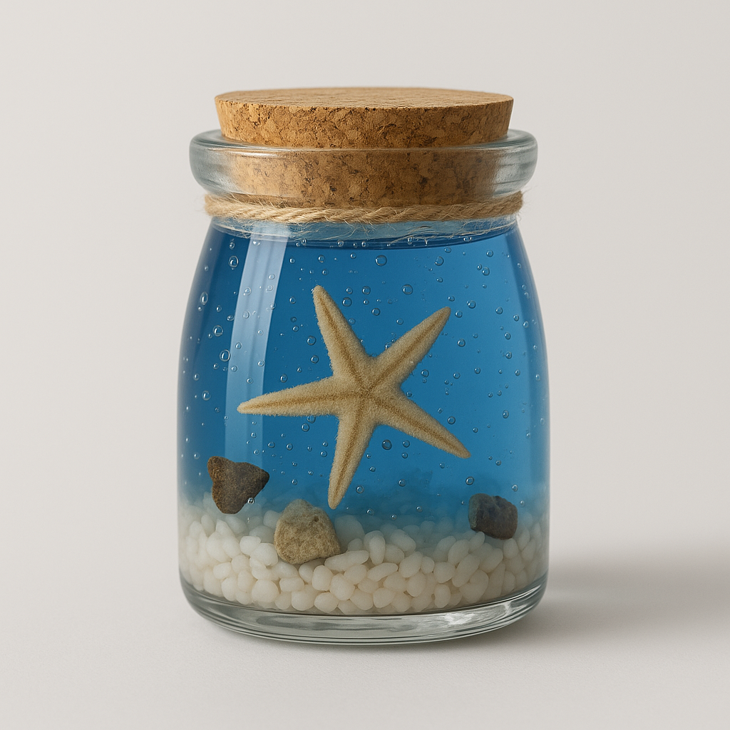 Ανακάλυψε το Aqua Soul, ένα αρωματικό κερί σε γυάλινο βάζο, εμπνευσμένο από τη γαλήνη της θάλασσας. Με φυσικό αστερία, λευκά βοτσαλάκια και διάφανο μπλε υγρό που θυμίζει καθαρές παραλίες, αυτό το κερί δεν είναι μόνο διακοσμητικό – είναι εμπειρία.