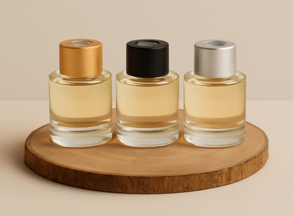 Συσκευασία: Κομψό γυάλινο μπουκάλι 50ml με ματ χρυσό, ασημί & μαύρο καπάκι