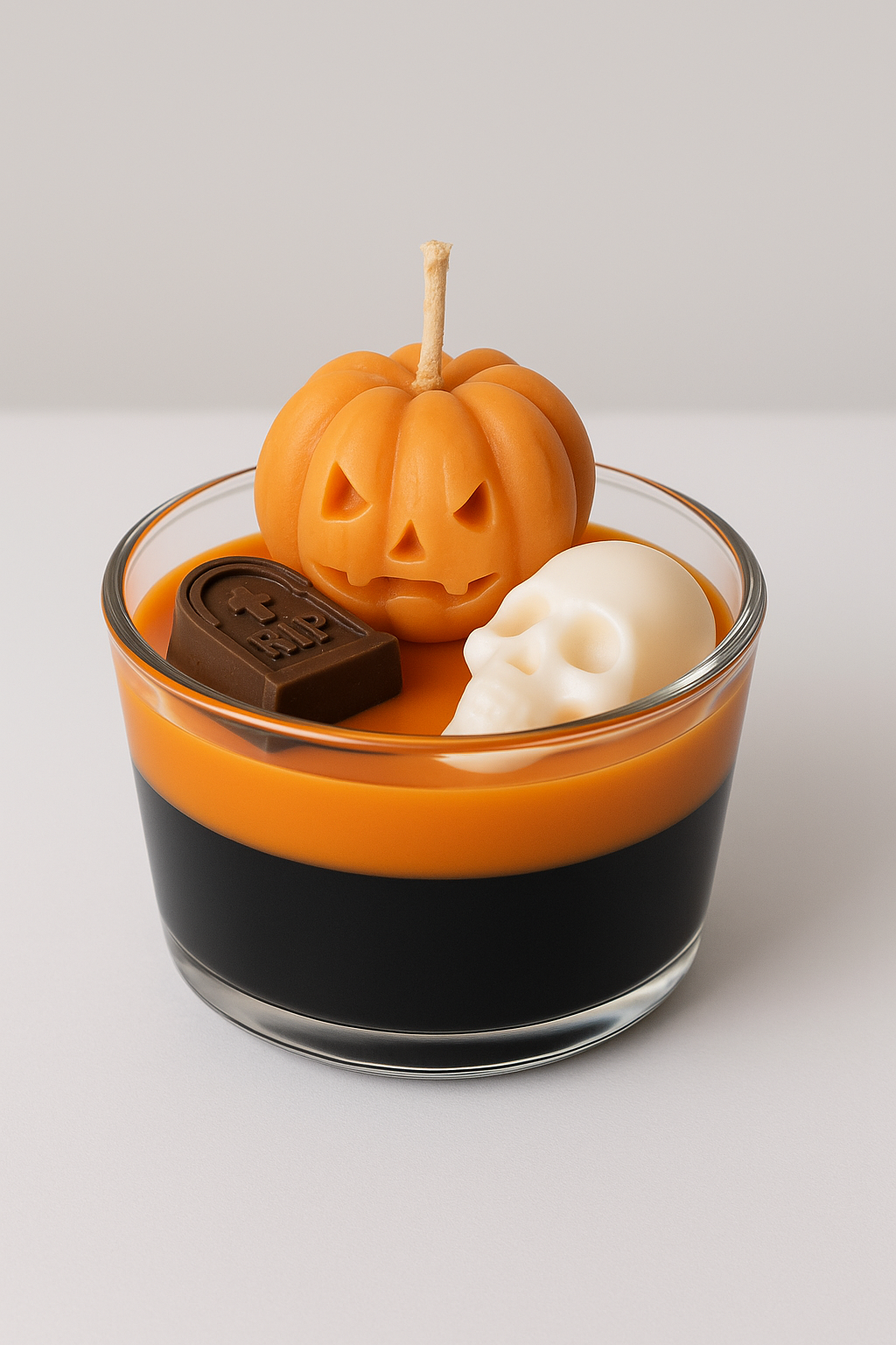 Φτιαγμένο από 100% οικολογικό κερί σόγιας, με λεπτομέρειες σε σχήμα κολοκύθας, κρανίου και ταφόπλακας, είναι ιδανικό για διακόσμηση αλλά και για να δημιουργήσει spooky vibes.