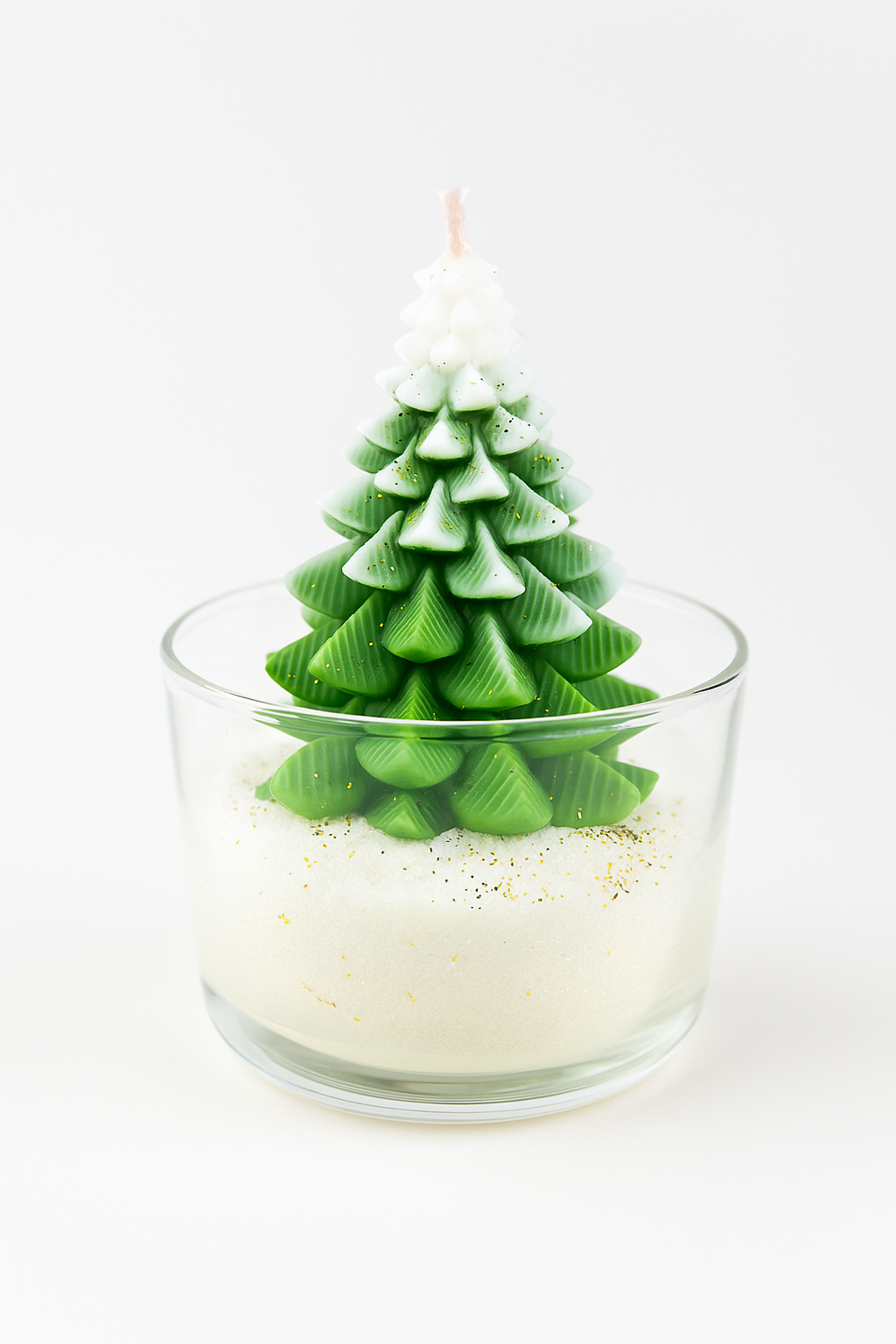 Το κερί μας είναι φτιαγμένο από ανώτερης ποιότητας φυτικό κερί, με διπλή ρίψη χρωμάτων που δημιουργεί μια απαλή διαβάθμιση από πράσινο σε λευκό, θυμίζοντας χιονισμένο έλατο. Τοποθετημένο σε γυάλινο δοχείο με “χιόνι” και διακριτική χρυσή λάμψη, αποτελεί και πολυτελές διακοσμητικό.